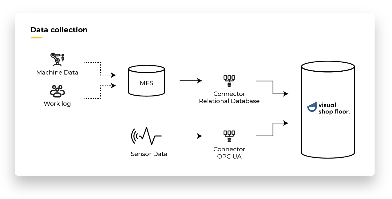 Im Beispiel wurden ein vorhandenes MES-System sowie Sensorik eingebunden. Diese automatisierte Datensammlung wurde ergänzt durch die manuelle Erfassung relevanter Informationen durch Mitarbeitende direkt in der Benutzeroberfläche.