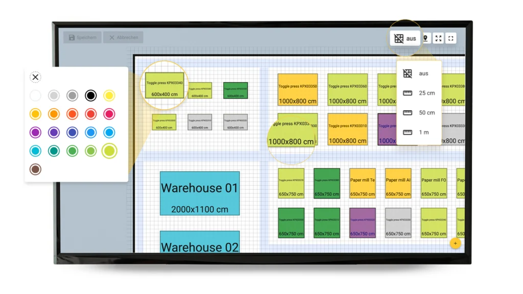 Häufig werden dabei verschiedene Einheiten wie Maschinen, Produktionslinien, Lagerbereiche und Verladerampen abgebildet, deren Anzahl in der Praxis mehrere Hundert Einheiten umfassen kann. Um auch in diesem Fall eine möglichst einfache und intuitive Verwaltung zu gewährleisten, wurde der Administrationsbereich vom Modul Smart Layout überarbeitet und weiter optimiert. Konkret wurden folgende Funktionen ergänzt:
