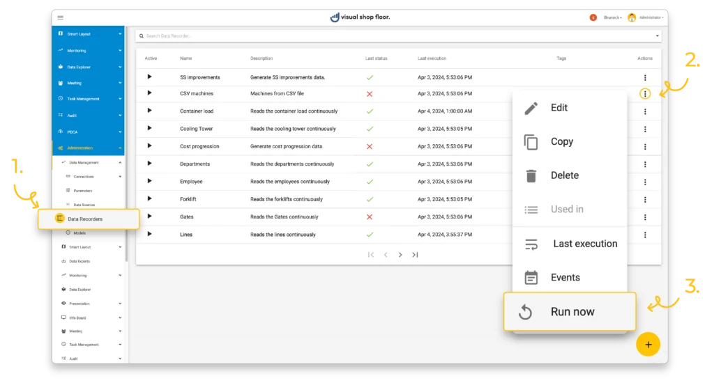 Einfache Verwaltung von Data Recordern durch „Run-Now“-Button